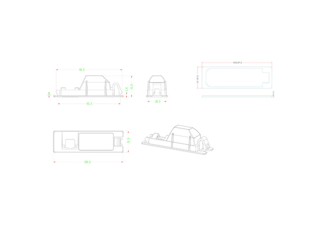 Fahrzeugspezifisches Kennzeichenleuchtenglas mit Kamera zum Austausch des original Leuchtenglases.